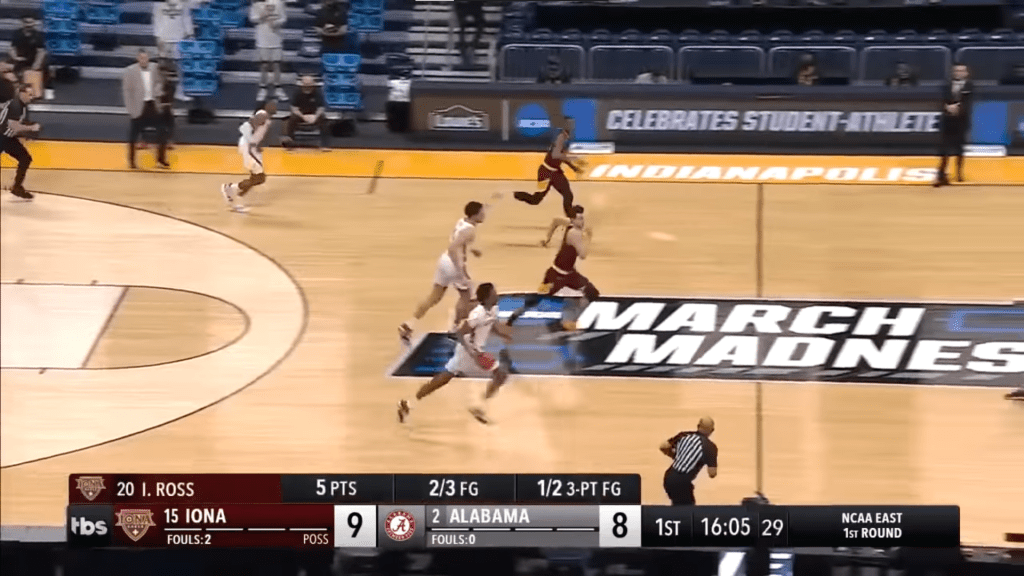 Again, just a terrible use of space. It’s too tall for no reason, and granted, it’s not blocking much, but if someone is taking a corner three at the bottom of the screen, I’m not going to see his feet. Lose the advertising on the right side, and this could take up less than half the current space.