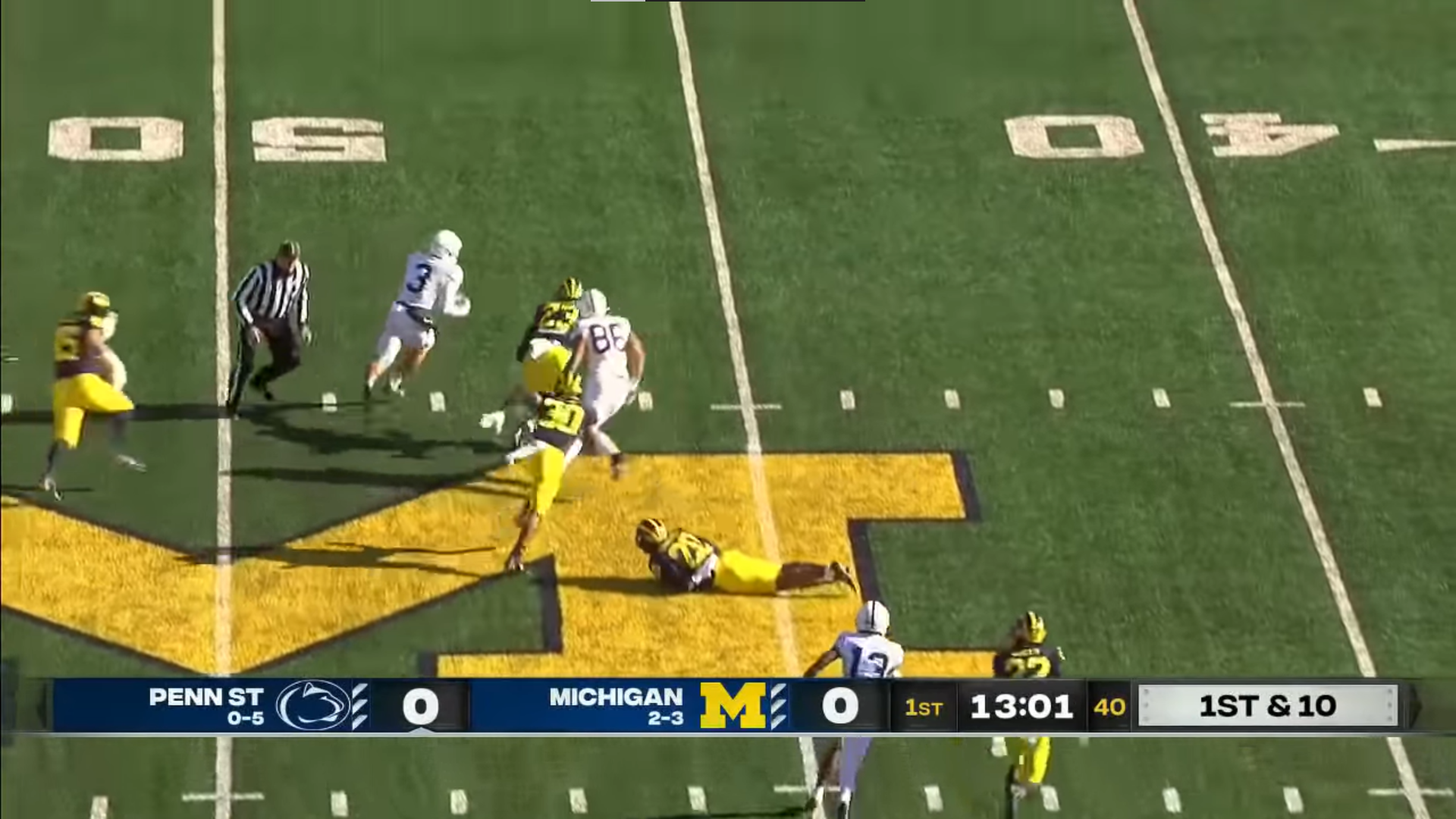 Information: A major source of confusion with the ESPN broadcast is the “Score Alert” on the news bug. It turns the entire bottom of the screen bright yellow and makes me think there’s a flag on the play every time. This is a massive oversight and I’m not sure how it wasn’t rectified within one week.